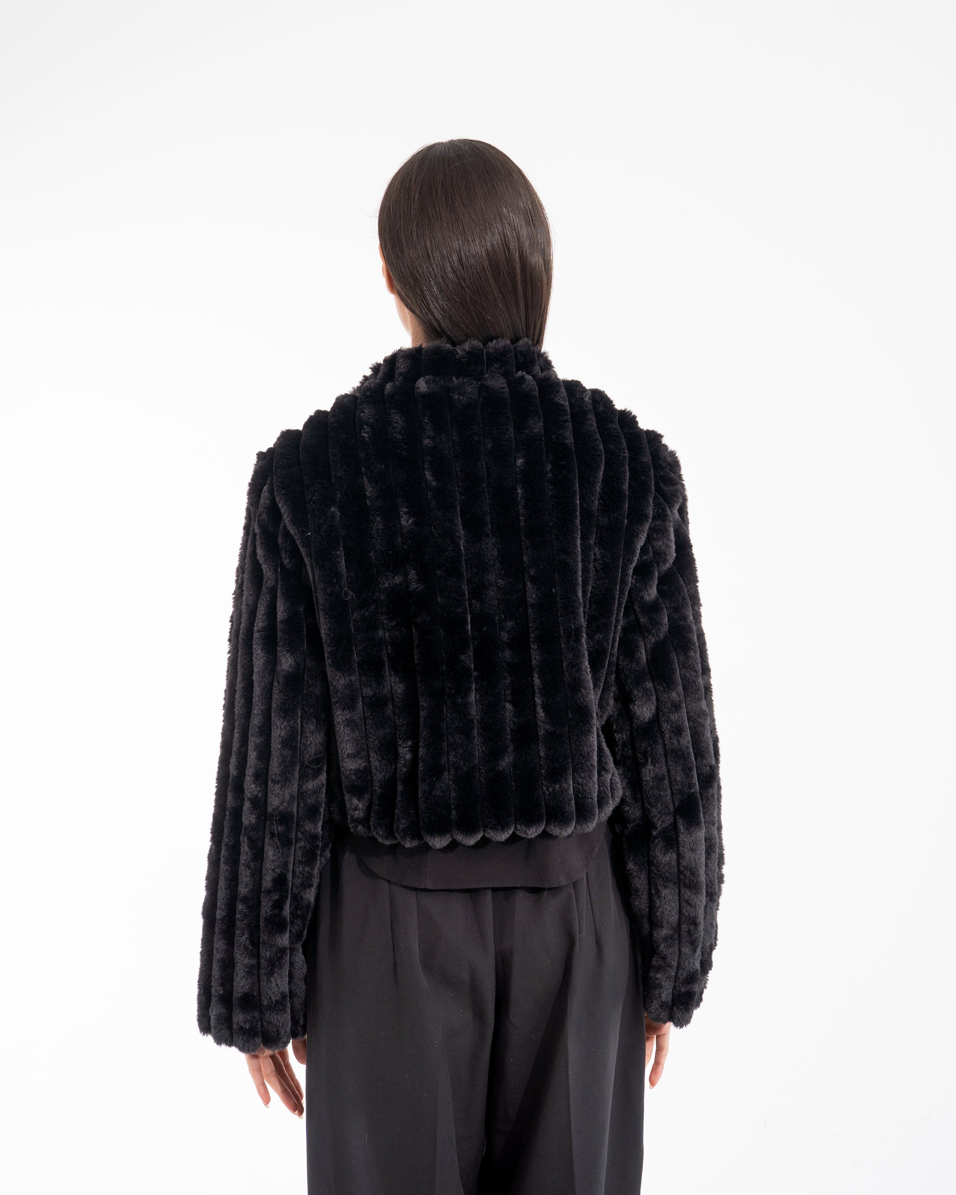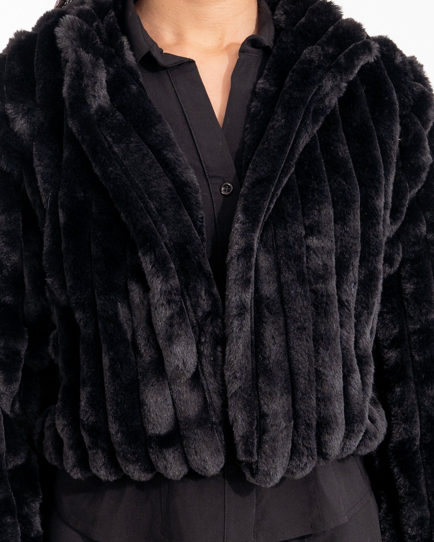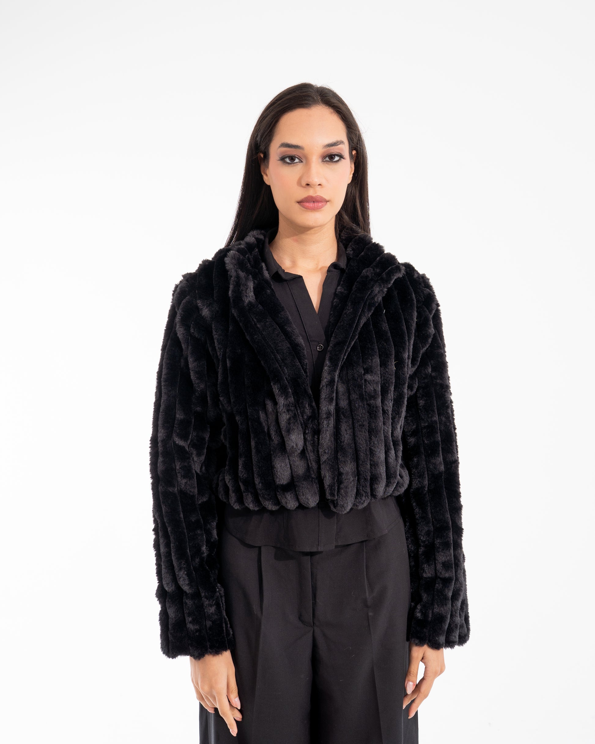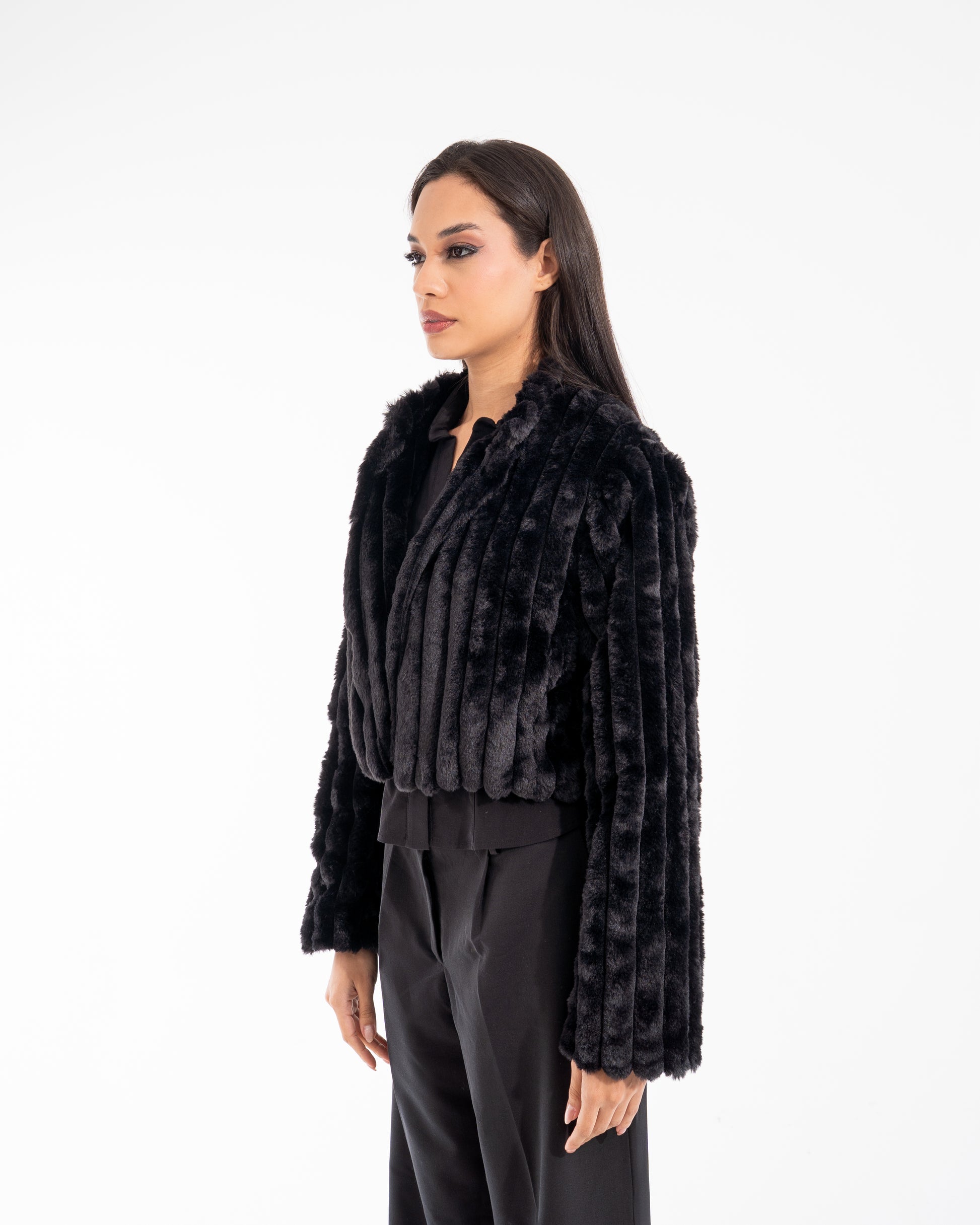 A deep, luxurious black fur jacket. Powerful. Timeless. A statement carved in black.
